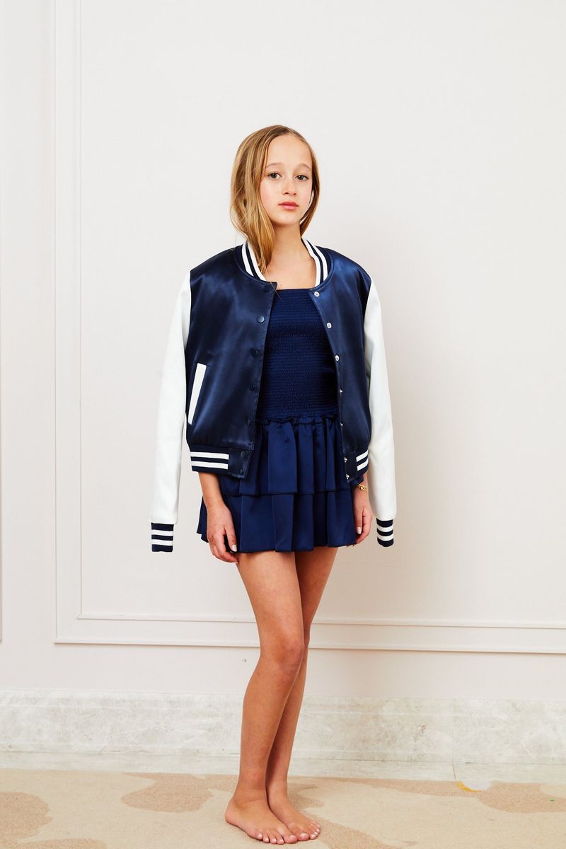 Theme Girls Navy White Satin Bomber Jacket F/W
