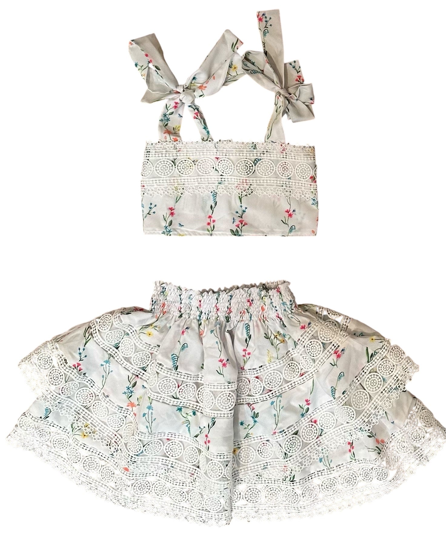 Dalai Girls S & S Mini Flowers Bandeau Tie Crop Top and Skirt Set FINAL SALE