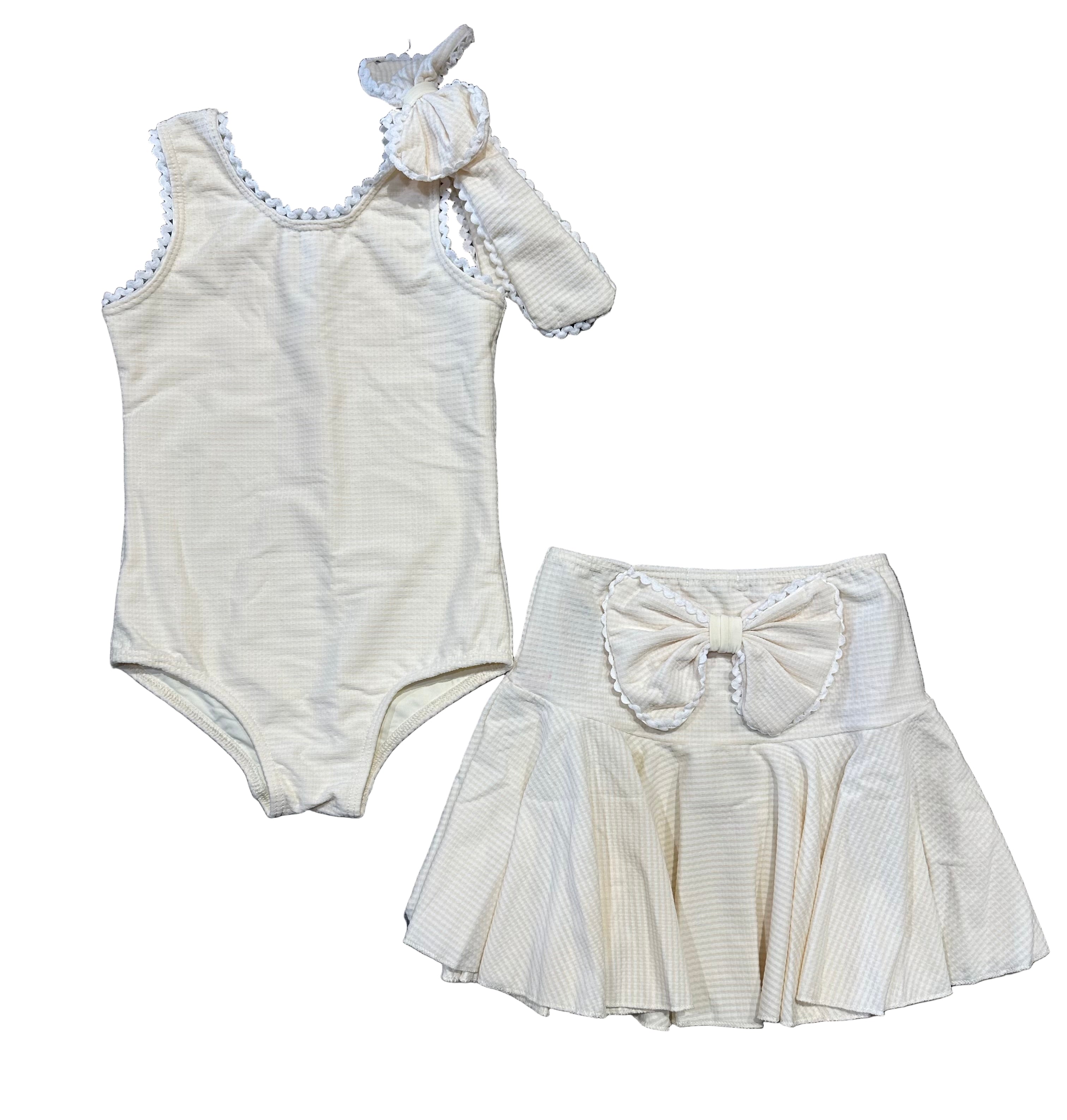 Planet Sea Girls Cream Gingham Bow One Piece and Skirt Set