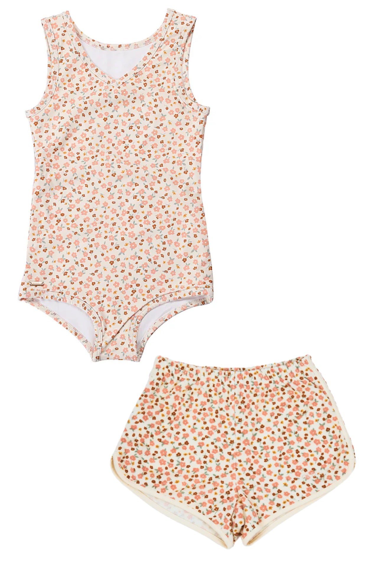 Grech & Co Girls Sunset Meadow One Piece and Terry Shorts Set