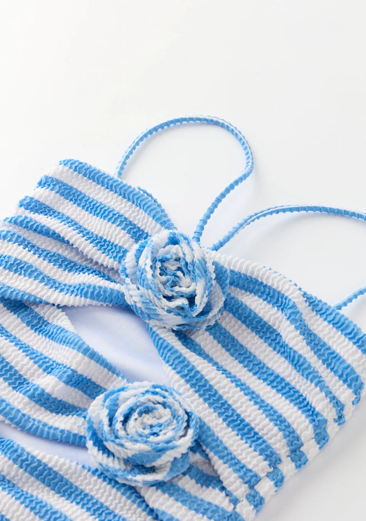 Marlo Girls Blue Stripe Cutout Nellie One Piece