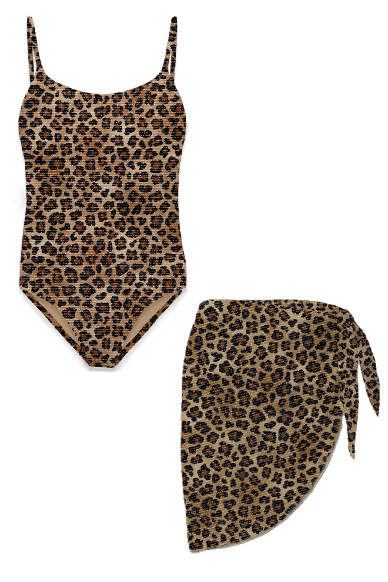 Mc2 Saint Barth Girls Lurex Leopard Classic Cecille One Piece and Sery Sarong Set