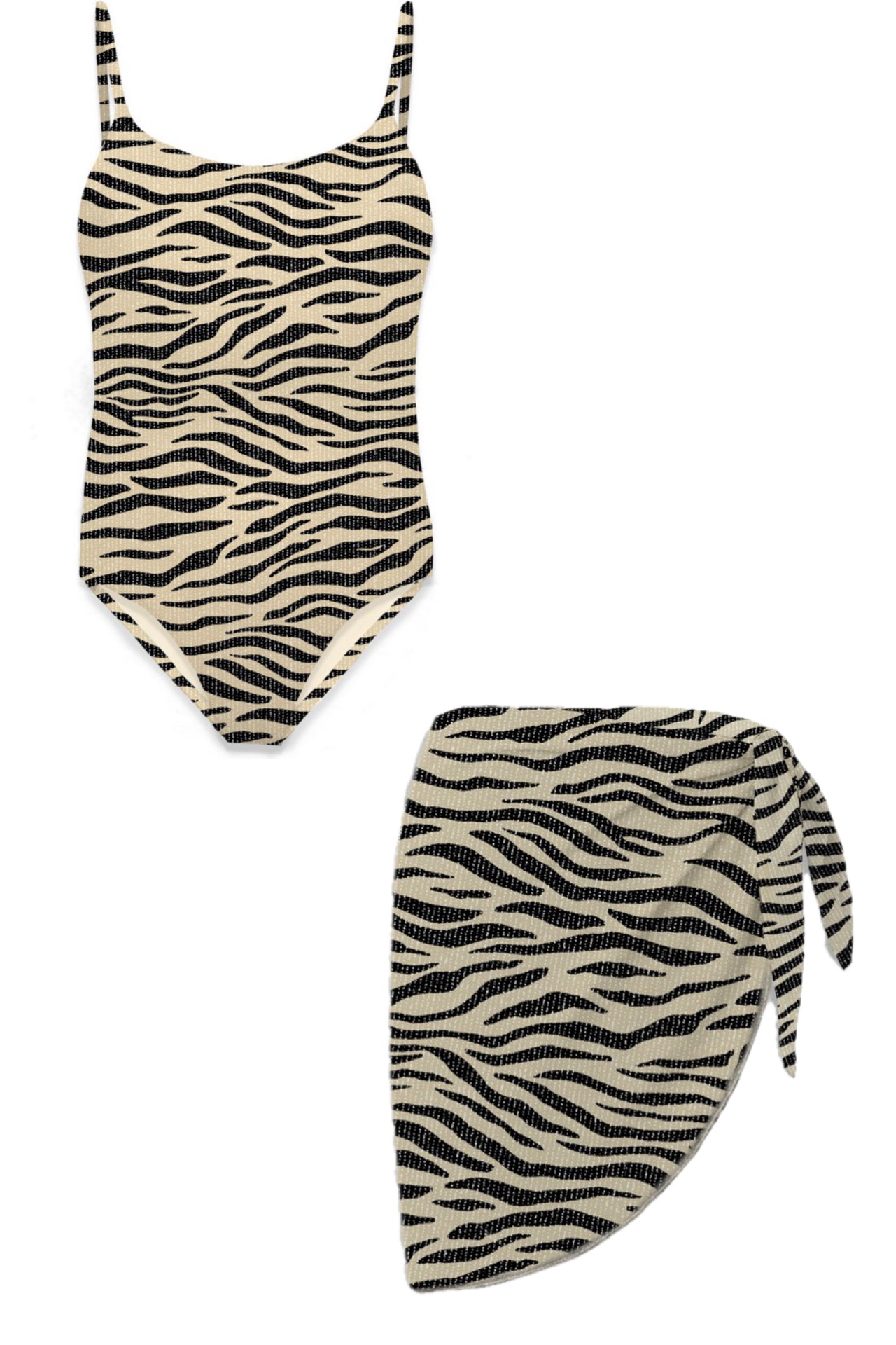 Mc2 Saint Barth Girls Lurex Zebra Classic Cecille One Piece and Sery Sarong Set