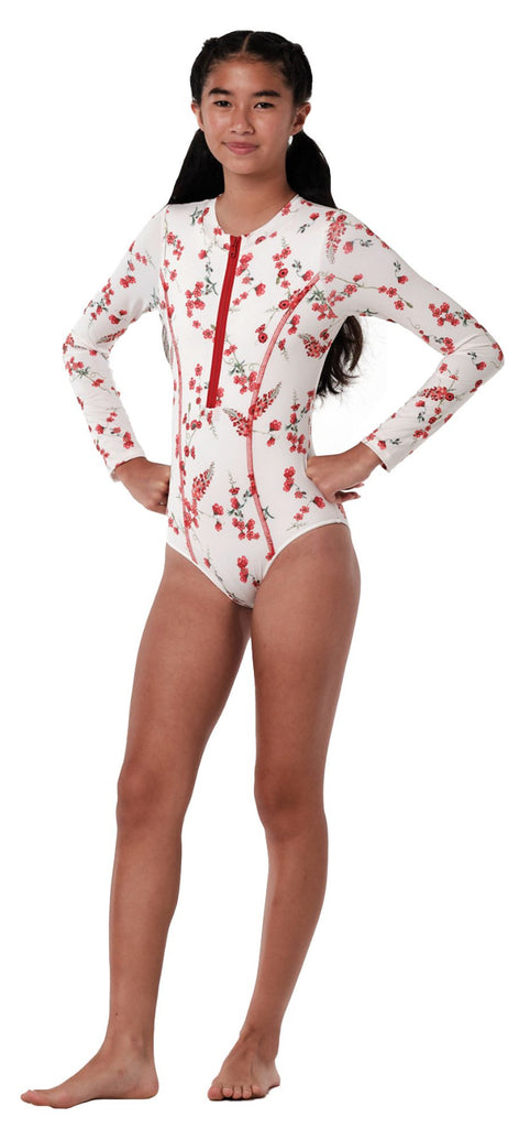 Submarine Girls Fresia Red Scooba Doo Long Sleeve Rashguard One Piece