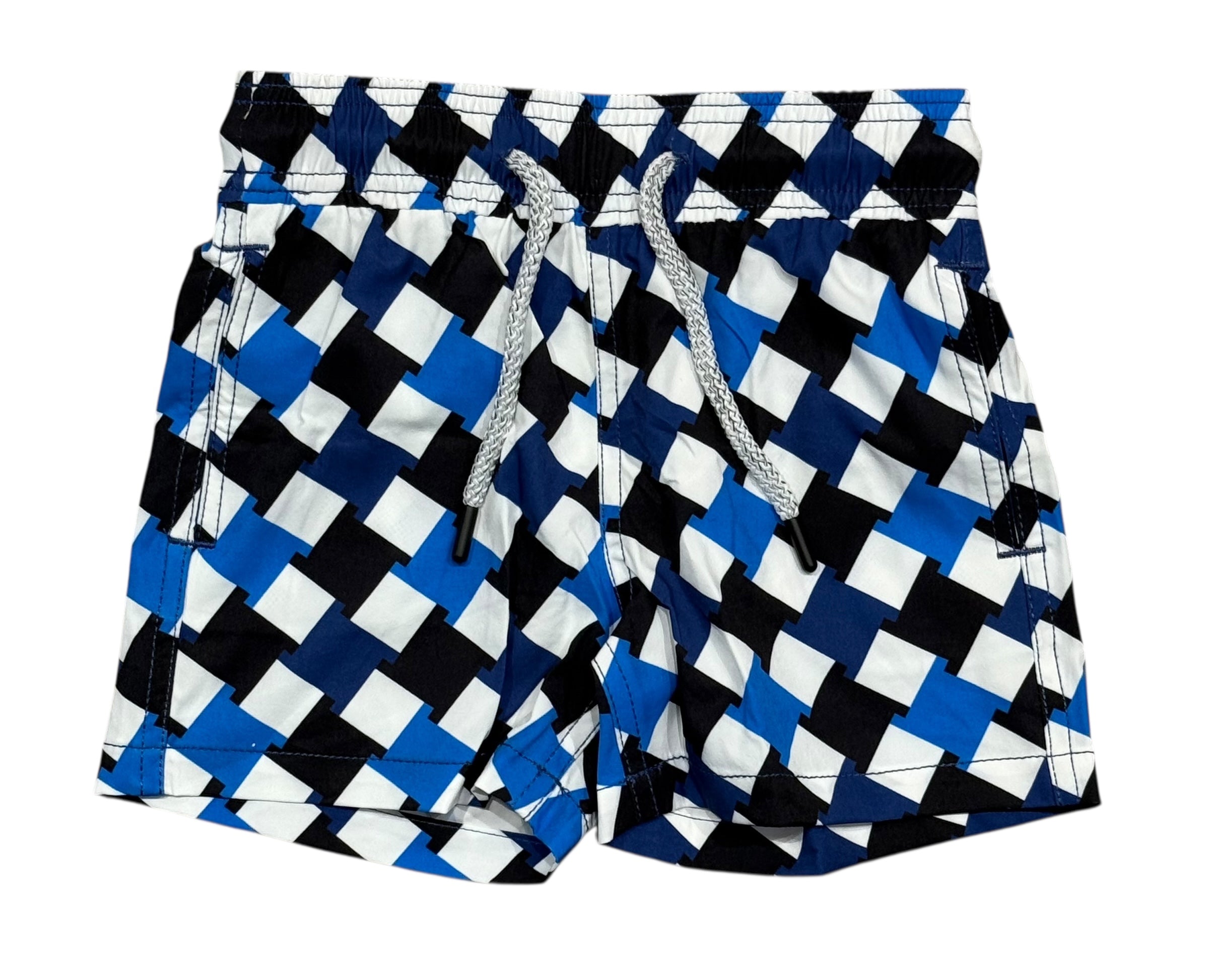Pier St Barths Boys Blue Houndstooth Junior Swim Shorts