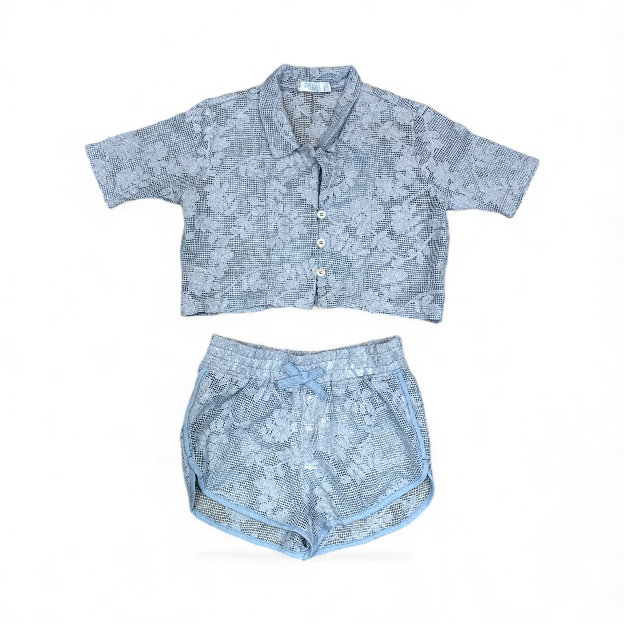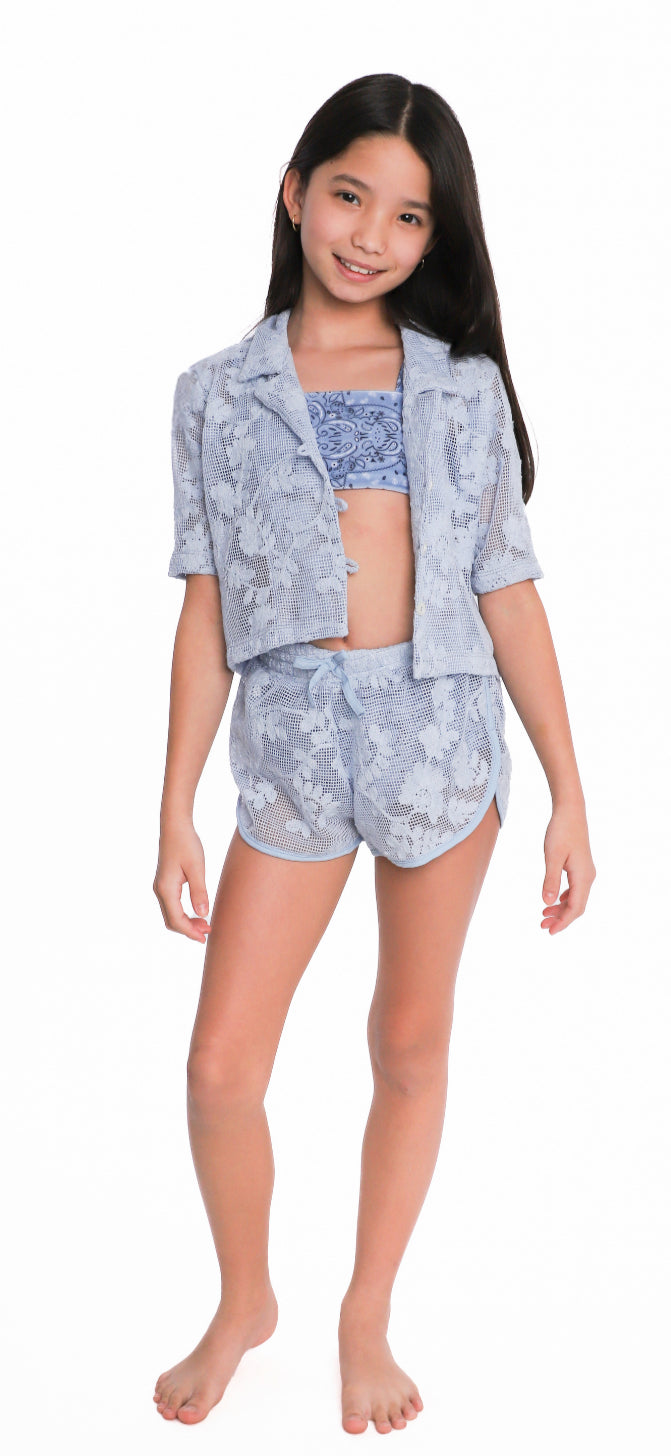 Dalai Girls Blue Mesh Flower Suzy Top and Deborah Shorts Coverup Set
