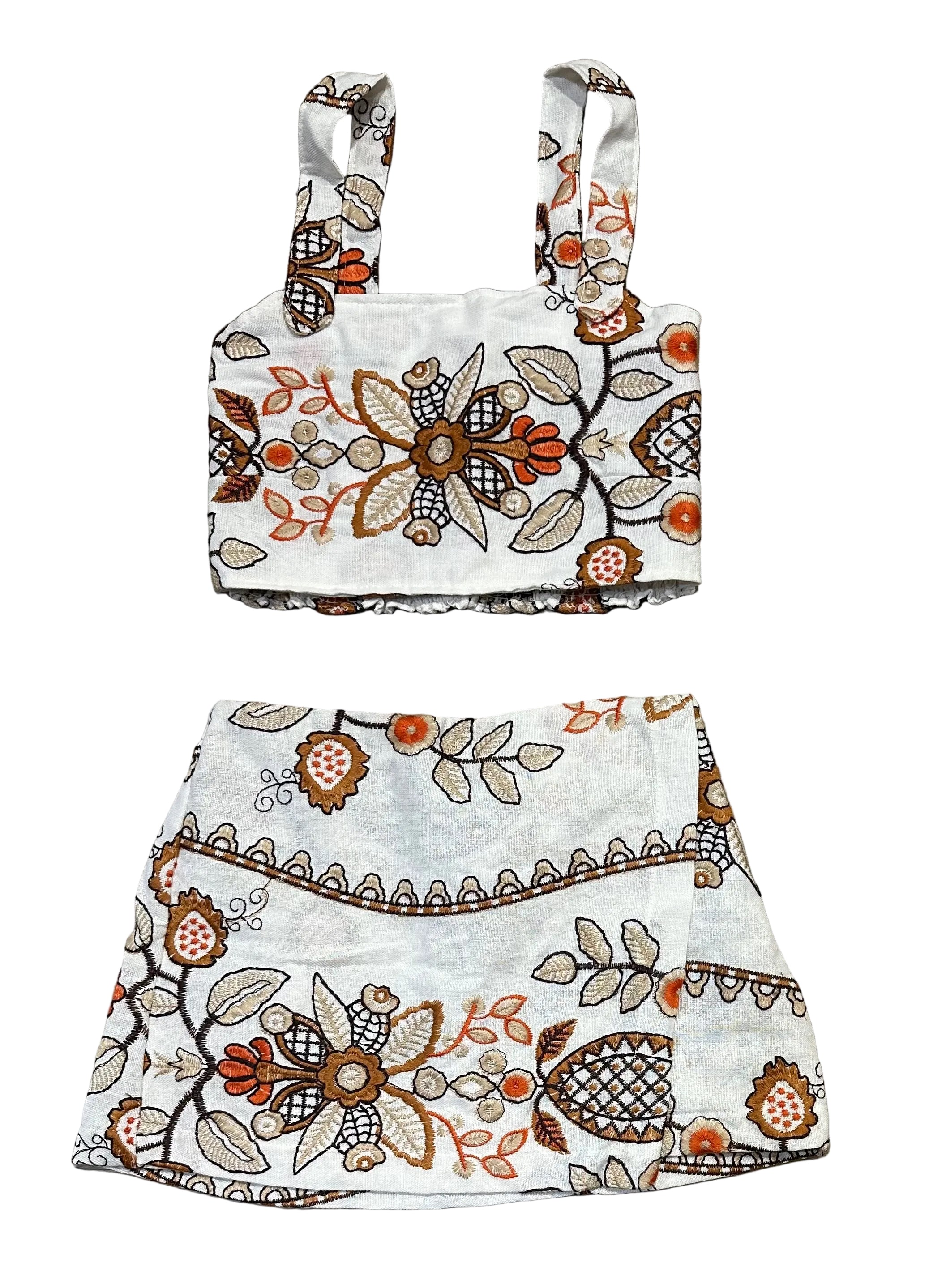 Dalai Girls White Embroidered Tank and Mini Skirt Set