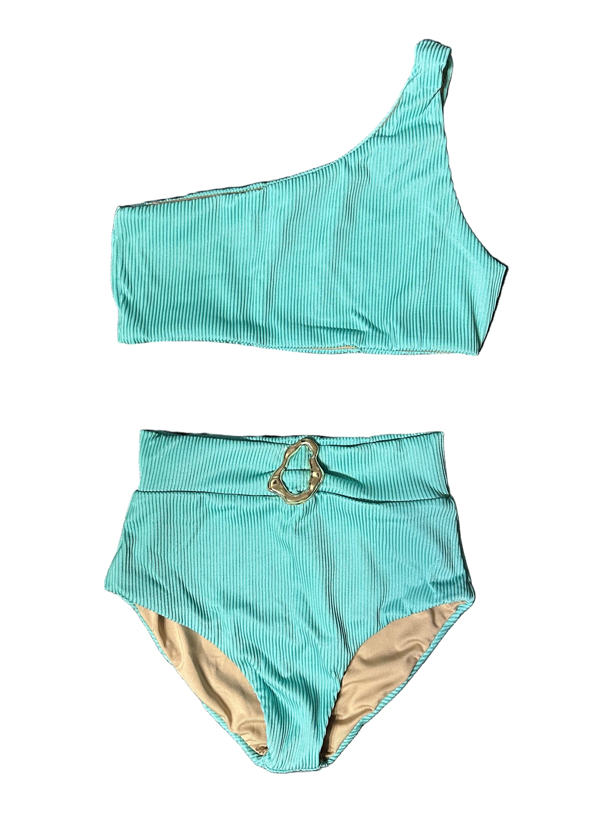 Dalai Teen Girls Green Grass One Shoulder Bikini