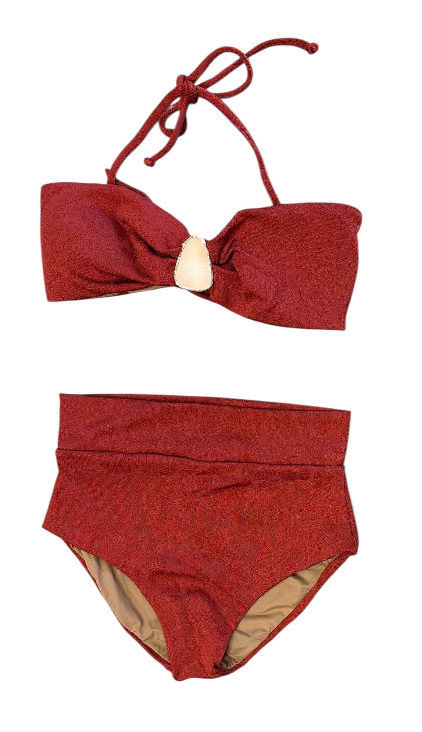 Dalai Teen Girls Terracotta Shell Embossed With Stone Buckle High Waisted Maya Bikini