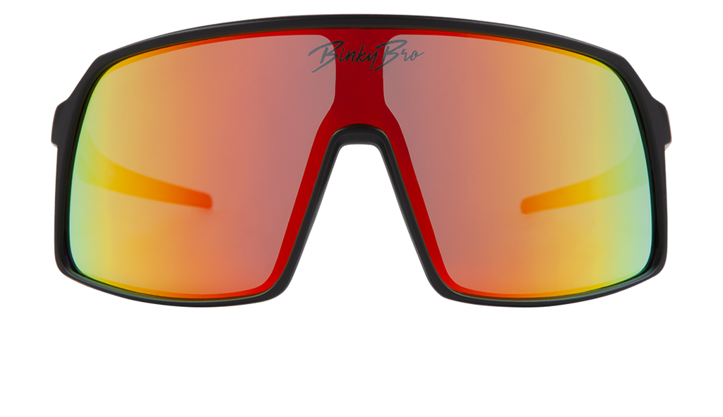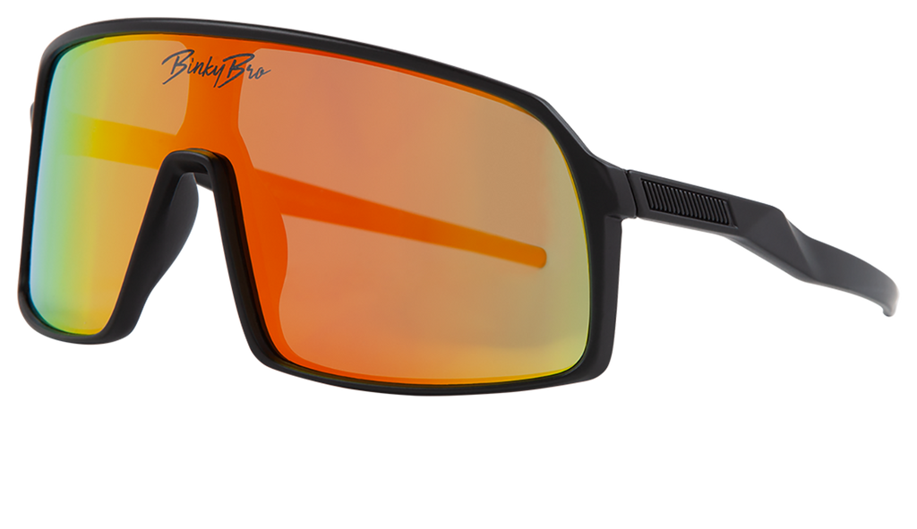 Our Monteverde Tiger sunglasses have black rims with a tiger colored reflective lens. Our BinkyBro signature logo is present on the top-middle of the lens. Size fits best for kids in the 12 months - 5 year range.