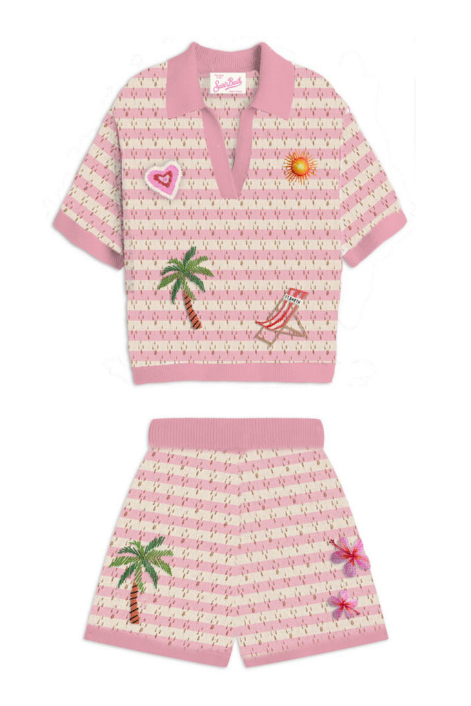 Mc2 Saint Barth Girls Stripe Embroidered Pixie Knitted Polo and Yvette Shorts Set