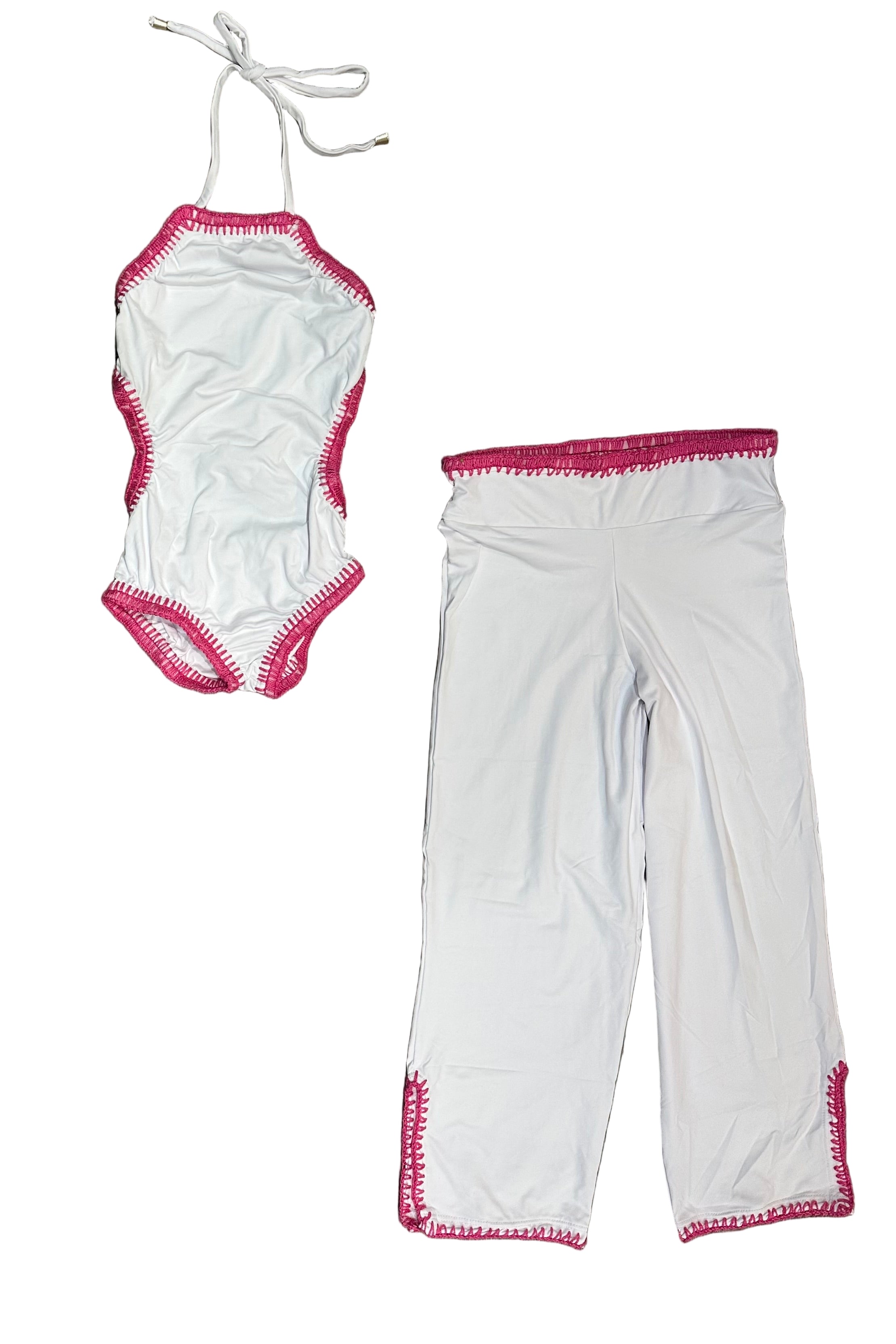 Planet Sea Girls White Cutout One Piece and Pants Set