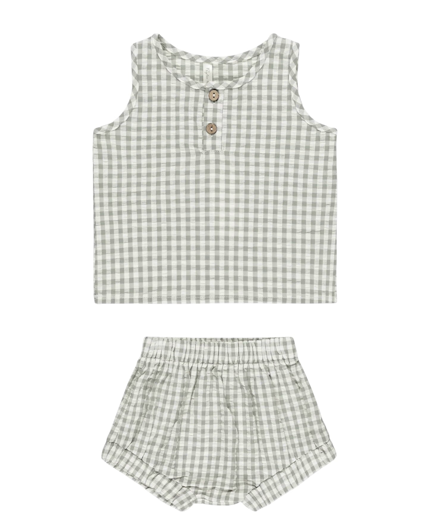 Rylee & Cru Baby Boys Eucalyptus Gingham Tank and Bloomer Set