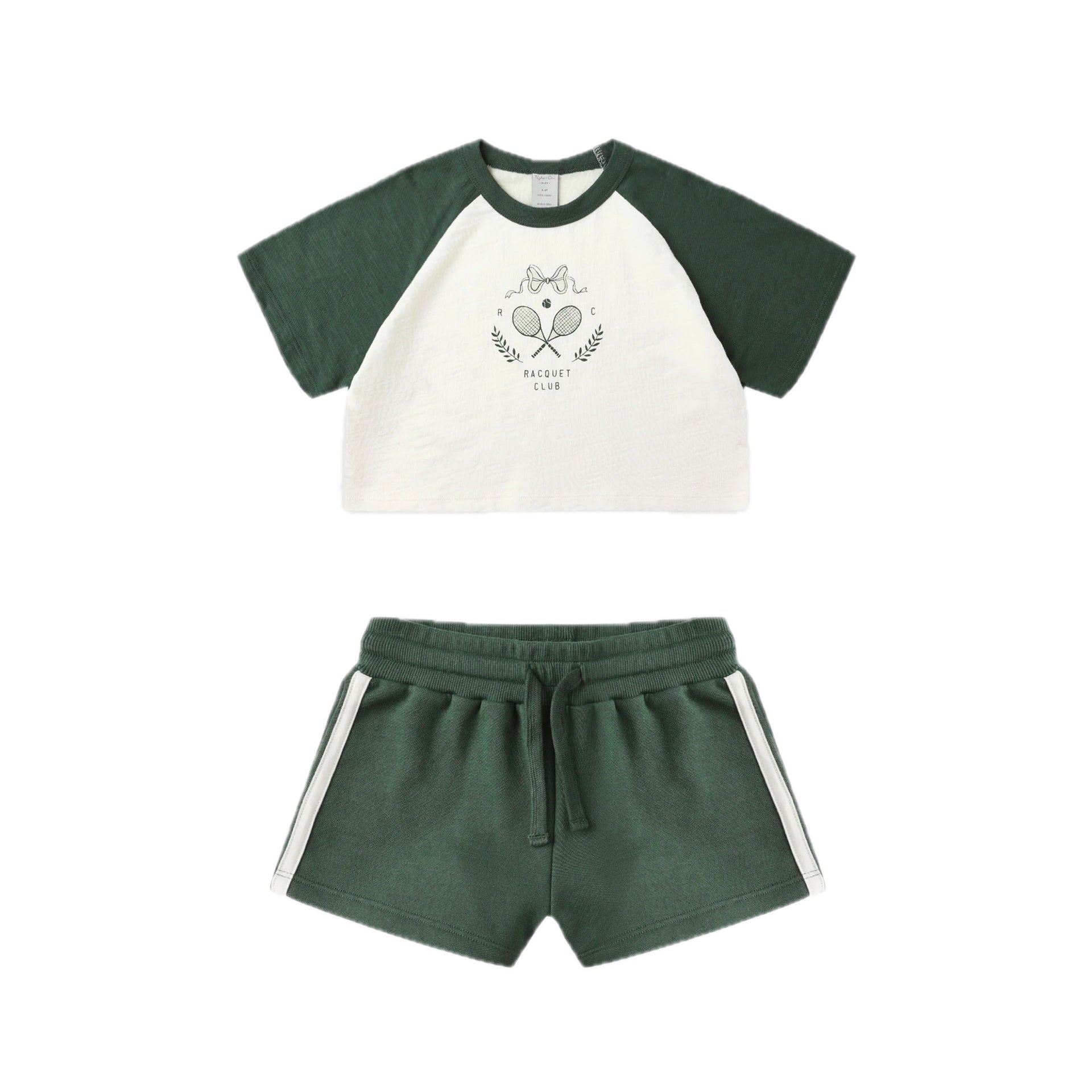 Rylee & Cru Girls Green Crop Raglan Tee and Track Shorts Set